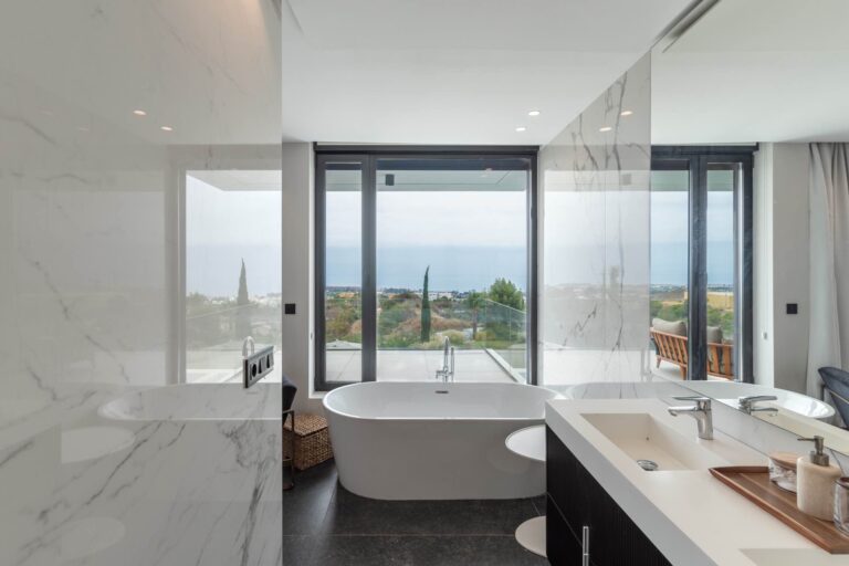 Overlooking the Mediterranean Sea, Eagle’s Crown spans over 2,000m², boasting spacious interiors, panoramic terraces, and meticulously landscaped gardens.