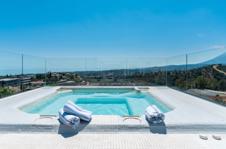 Nestled in the prestigious New Golden Mile, Eagle’s Crown is a stunning villa that combines privacy, luxury, and breathtaking views. Located just minutes from Puerto Banús and Estepona, this south-facing villa offers a serene retreat while keeping you close to Marbella’s finest attractions.
