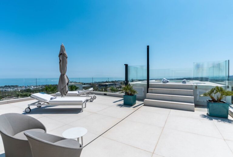 On the top floor, a 200m² chill-out terrace with a jacuzzi offers spectacular views and the perfect space to relax or entertain while enjoying Marbella’s iconic sunrises and sunsets.